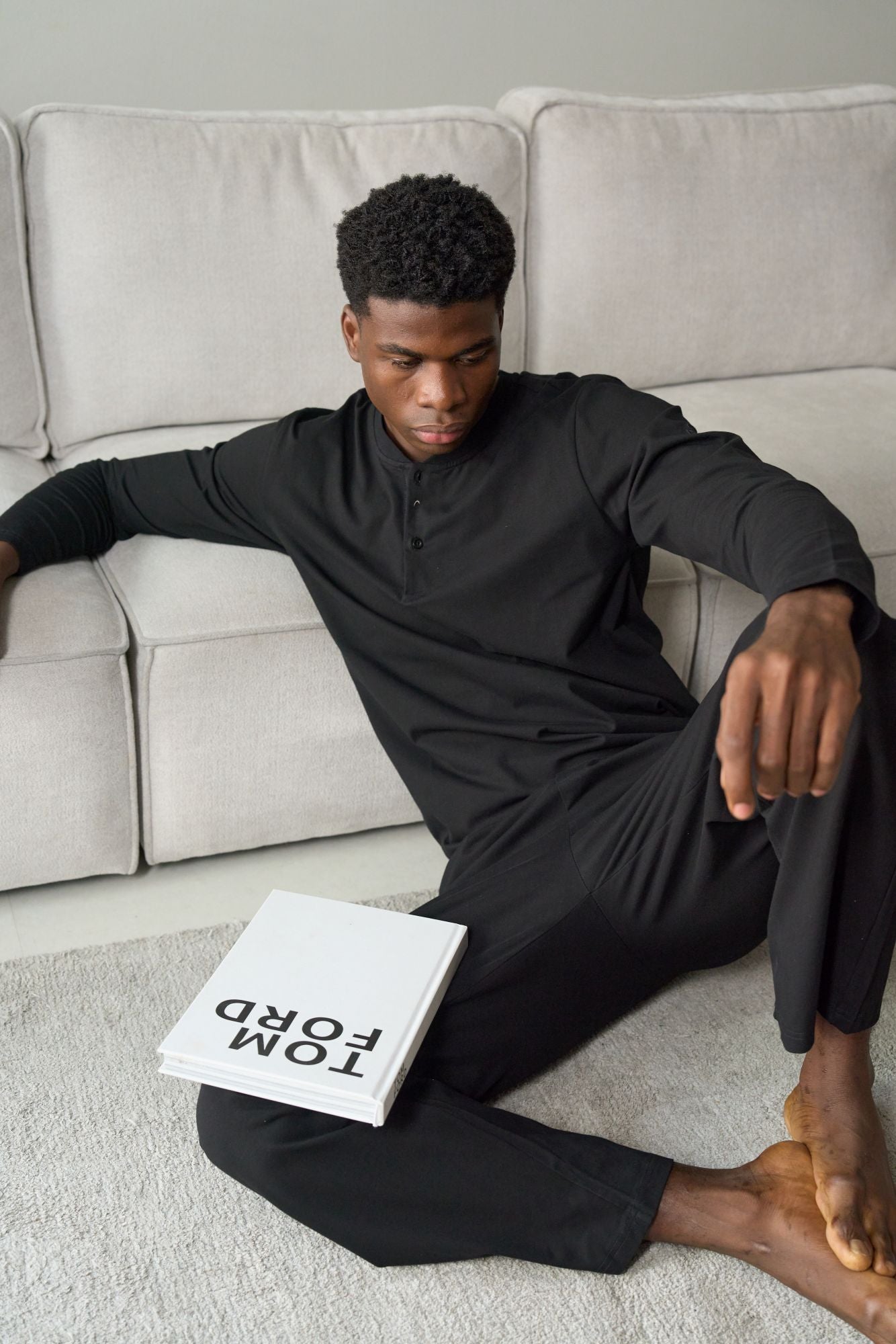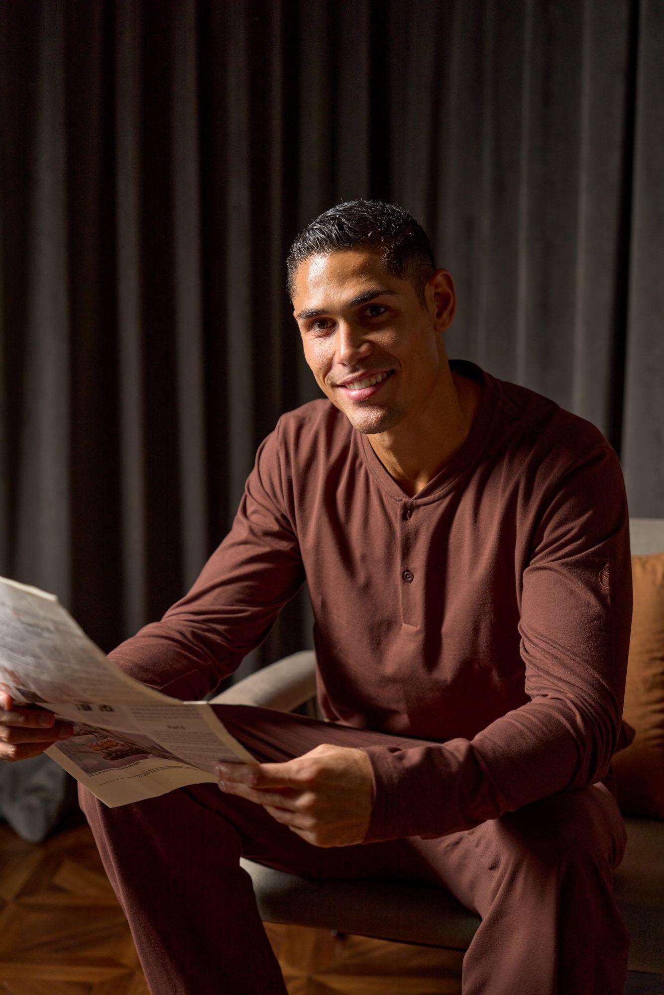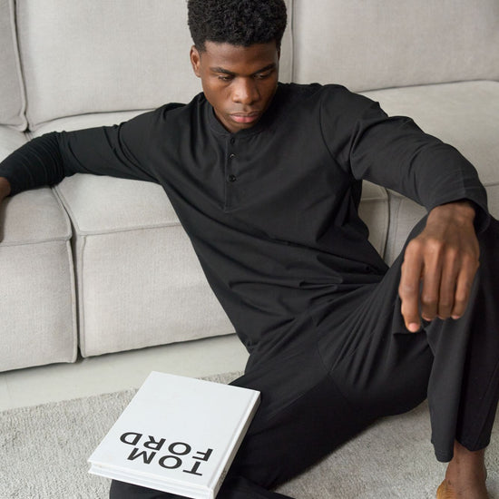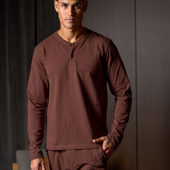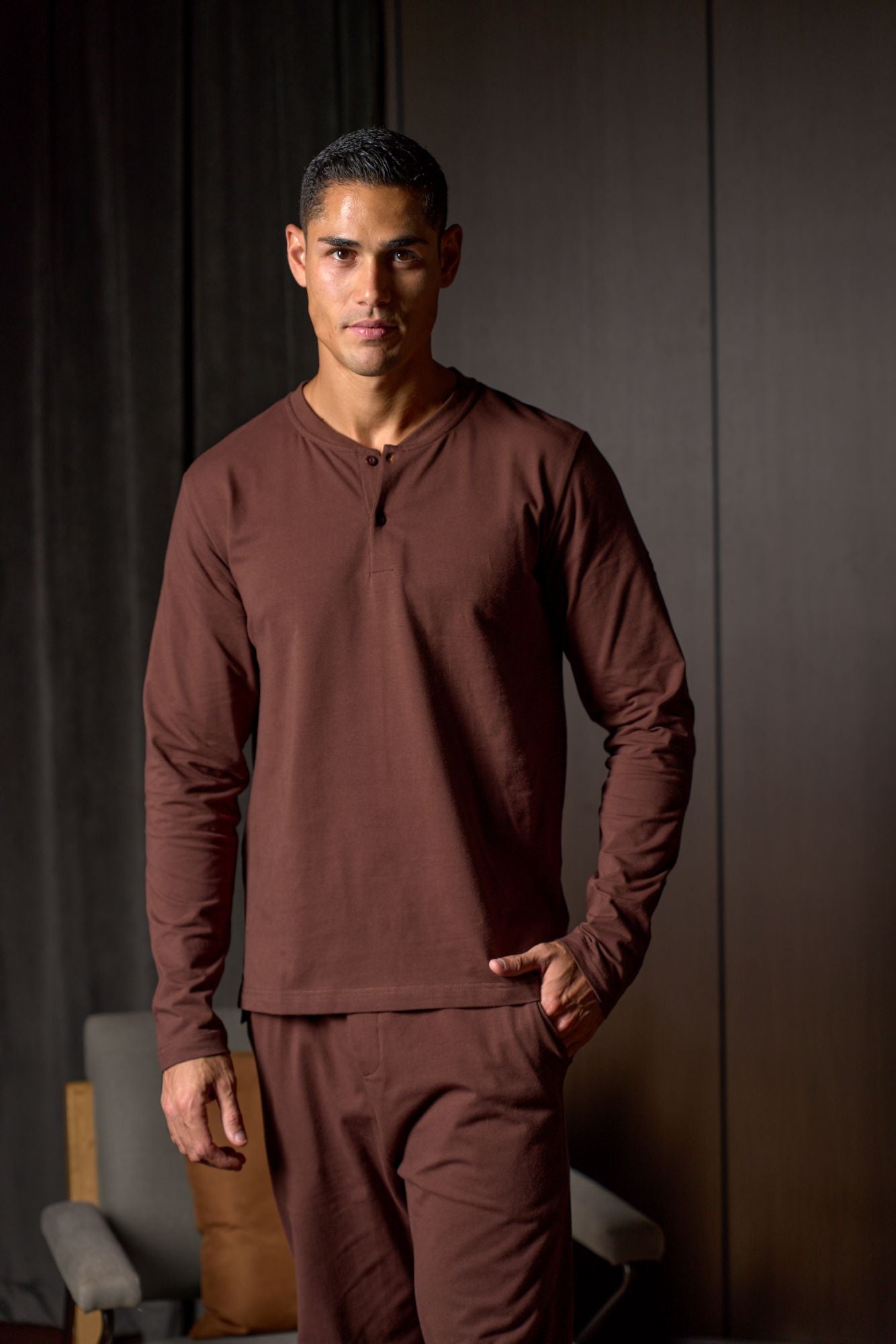 Super coupe ! Le col Henley change vraiment des pyjamas classiques. Ça fait habillé même quand je suis en mode détente.