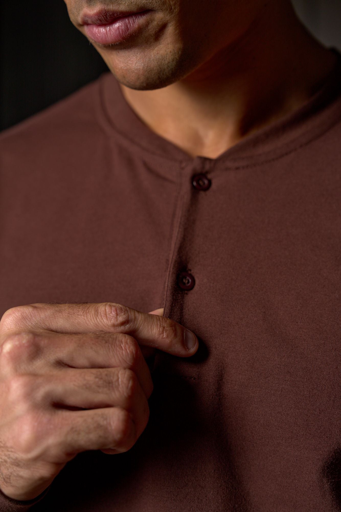 Ce modèle adopte une coupe Henley élégante, avec patte de boutonnage et col arrondi. Il apporte une touche soignée et moderne, idéale pour la maison comme pour le télétravail.
