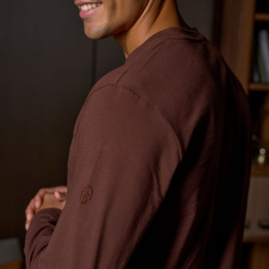 Disponible en Noir ou en Chocolat, il adopte une coupe Henley intemporelle et élégante, ponctuée de détails signature SLAZZ : broderie subtile sur la manche gauche et étiquette tissée discrète à la base.
