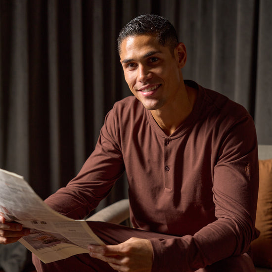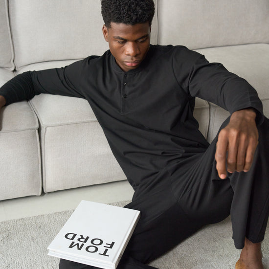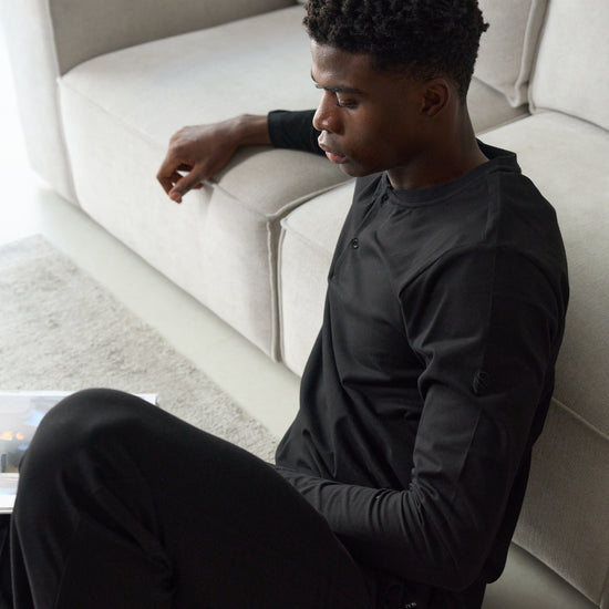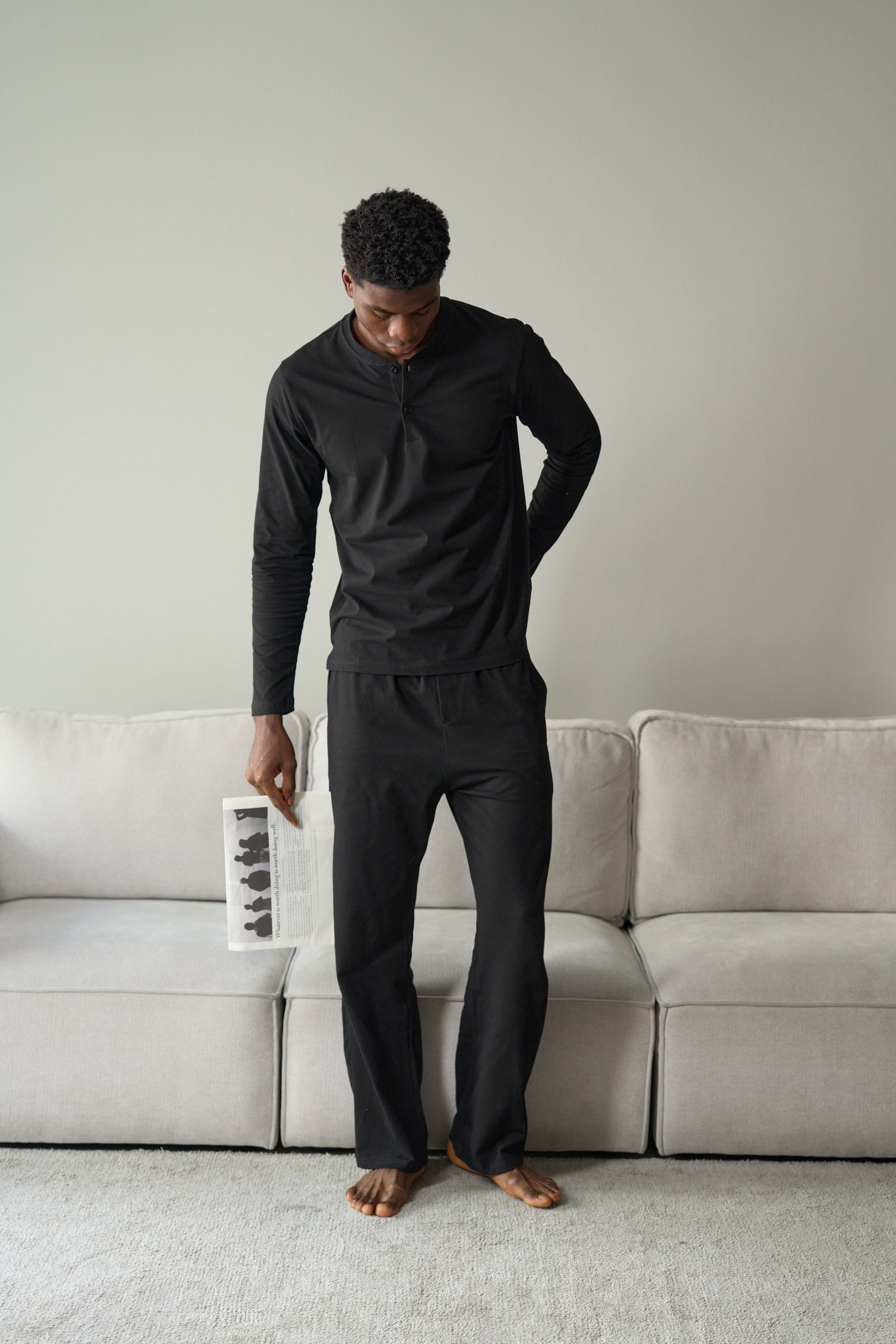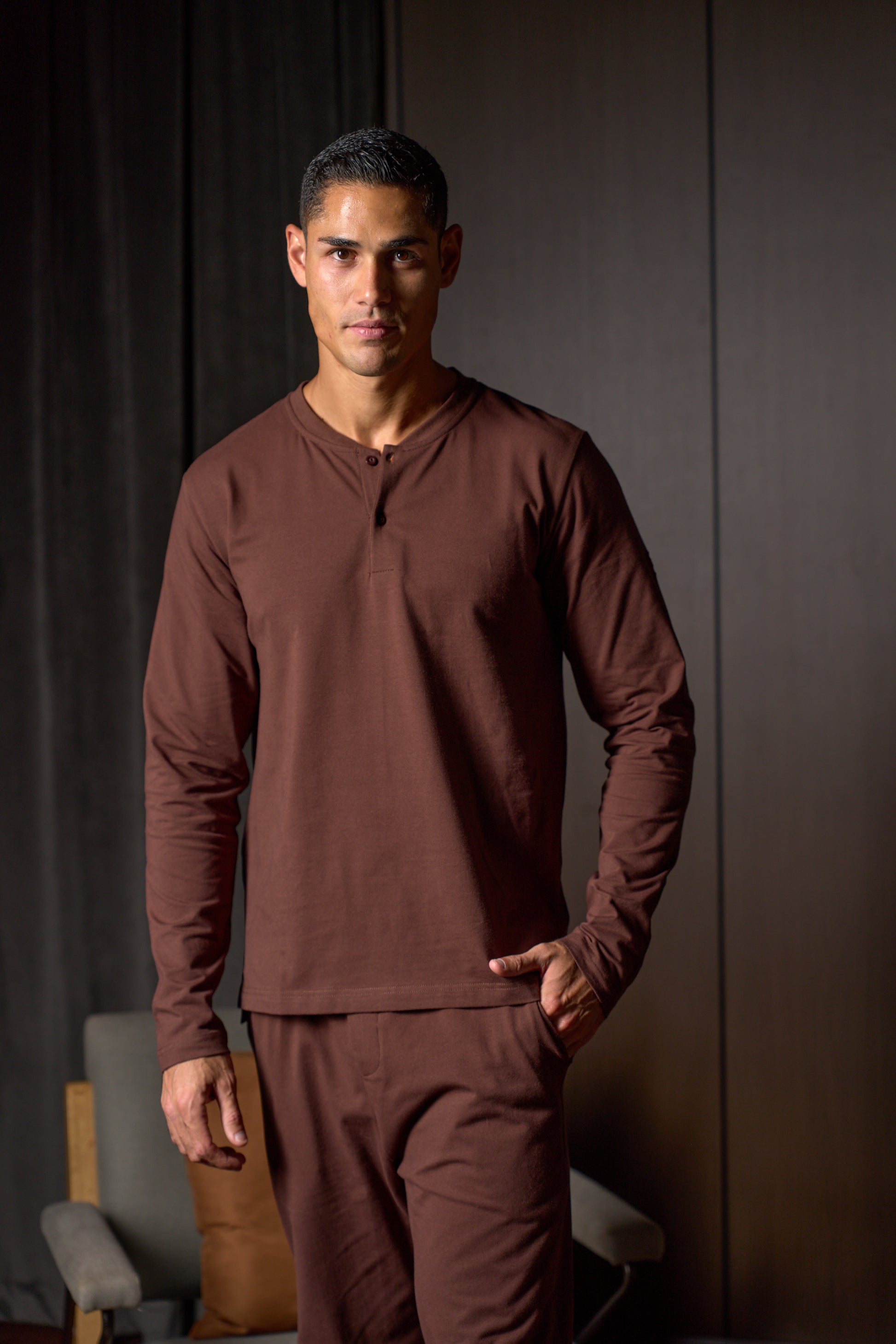 Super coupe ! Le col Henley change vraiment des pyjamas classiques. Ça fait habillé même quand je suis en mode détente.