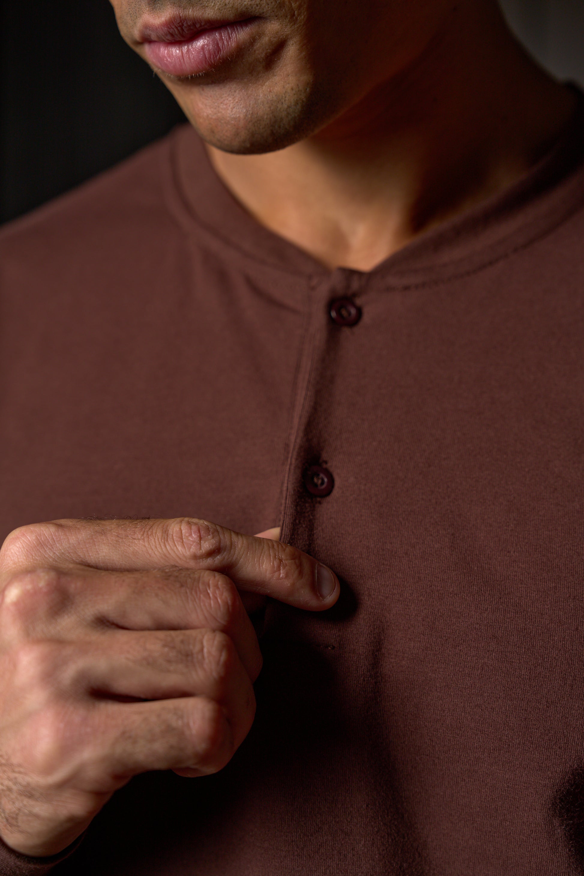 Disponible en Noir ou en Chocolat, il adopte une coupe Henley intemporelle et élégante, ponctuée de détails signature SLAZZ : broderie subtile sur la manche gauche et étiquette tissée discrète à la base.