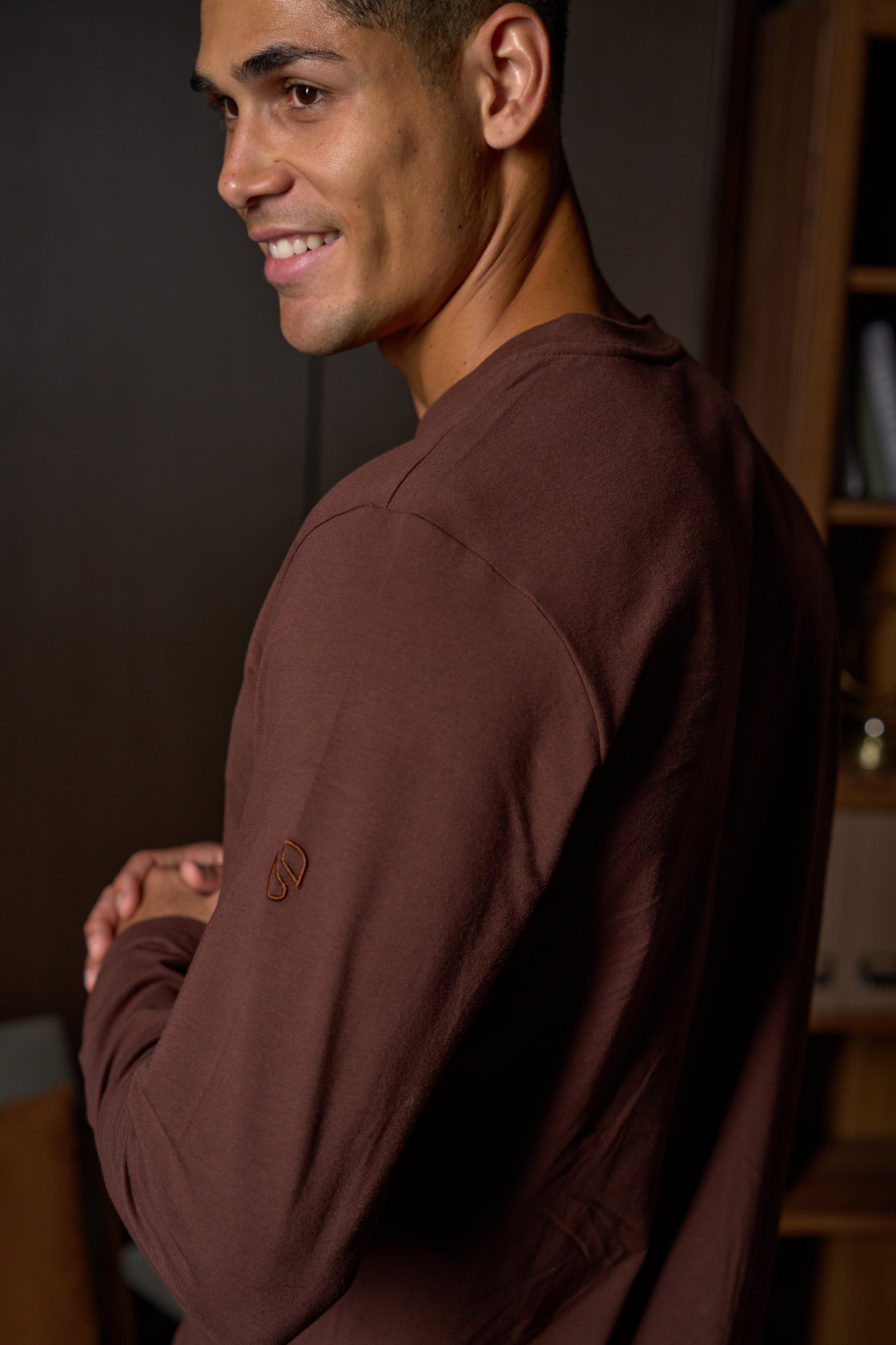 Le haut de pyjama SLAZZ est proposé en Noir intemporel et en Chocolat raffiné, deux teintes sobres et faciles à assortir pour un style élégant et polyvalent.