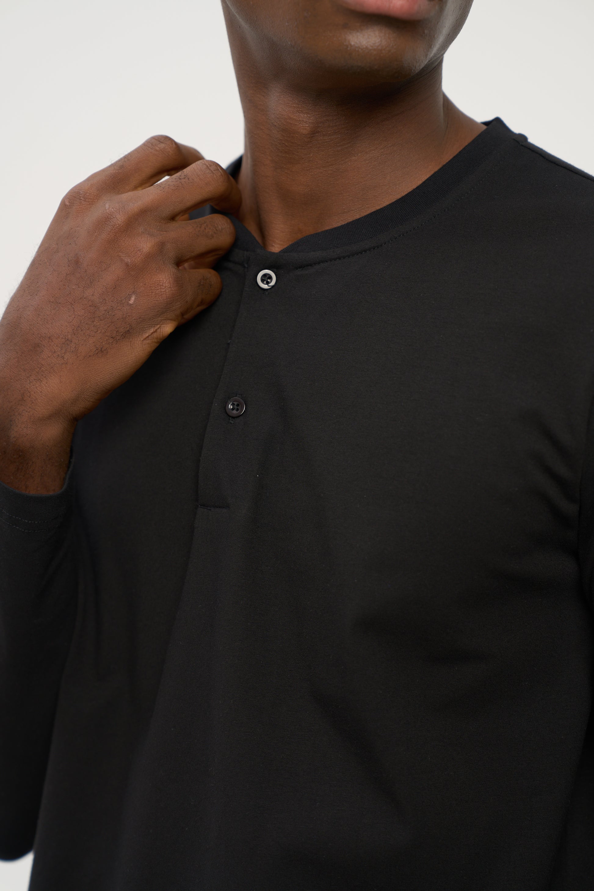 Ce modèle adopte une coupe Henley élégante, avec patte de boutonnage et col arrondi. Il apporte une touche soignée et moderne, idéale pour la maison comme pour le télétravail.
