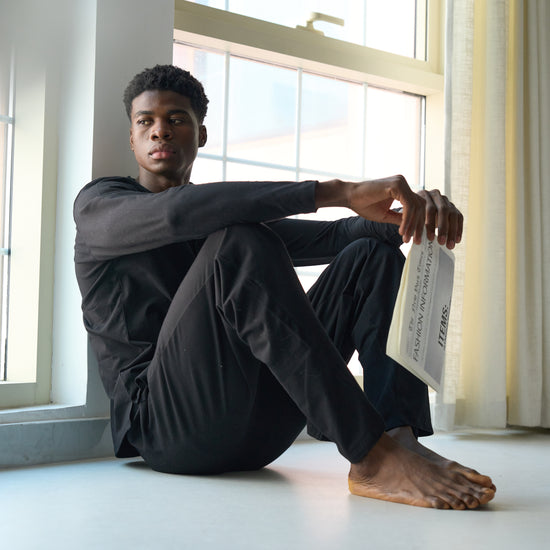 SLAZZ imagine des pièces pensées pour accompagner votre quotidien avec style et simplicité. Le bas de pyjama devient un allié élégant, pour lire, se détendre ou profiter pleinement de la maison. Une approche soignée du loungewear masculin, où chaque détail compte.
